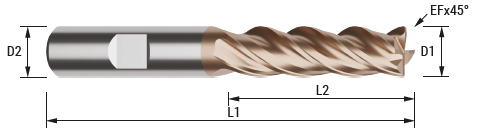 4-skärig solid pinnfräs avsedd för högpresterande fräsning (HPC) och kan användas för både grov- och finbearbetning beroende på applikationen. Verktyget är speciellt utformat för bearbetning av rostfritt stål och rekommenderas för högpresterande fräsoperationer. HA-skaft