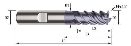 Designad för högpresterande fräsning (HPC). Den är särskilt lämpad för bearbetning av hårda material, såsom härdat stål med en hårdhet på 45-60 HRC. Verktyget har en geometri som är optimerad för dessa material och är belagt med ALTIN för att förbättra prestanda och livslängd. HA-skaft. Finns med 3 eller 4 skär.