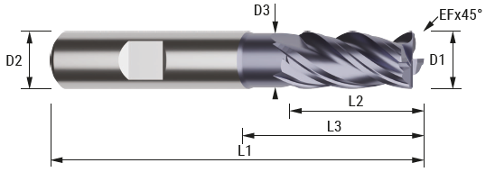 4-skärig universal pinnfräs designad för högpresterande fräsning (HPC). HA-skaft.