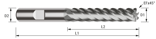 7-skärig pinnfräs designad för dynamisk fräsning. Den är särskilt lämpad för bearbetning av stål och gjutjärn. HA-skaft.